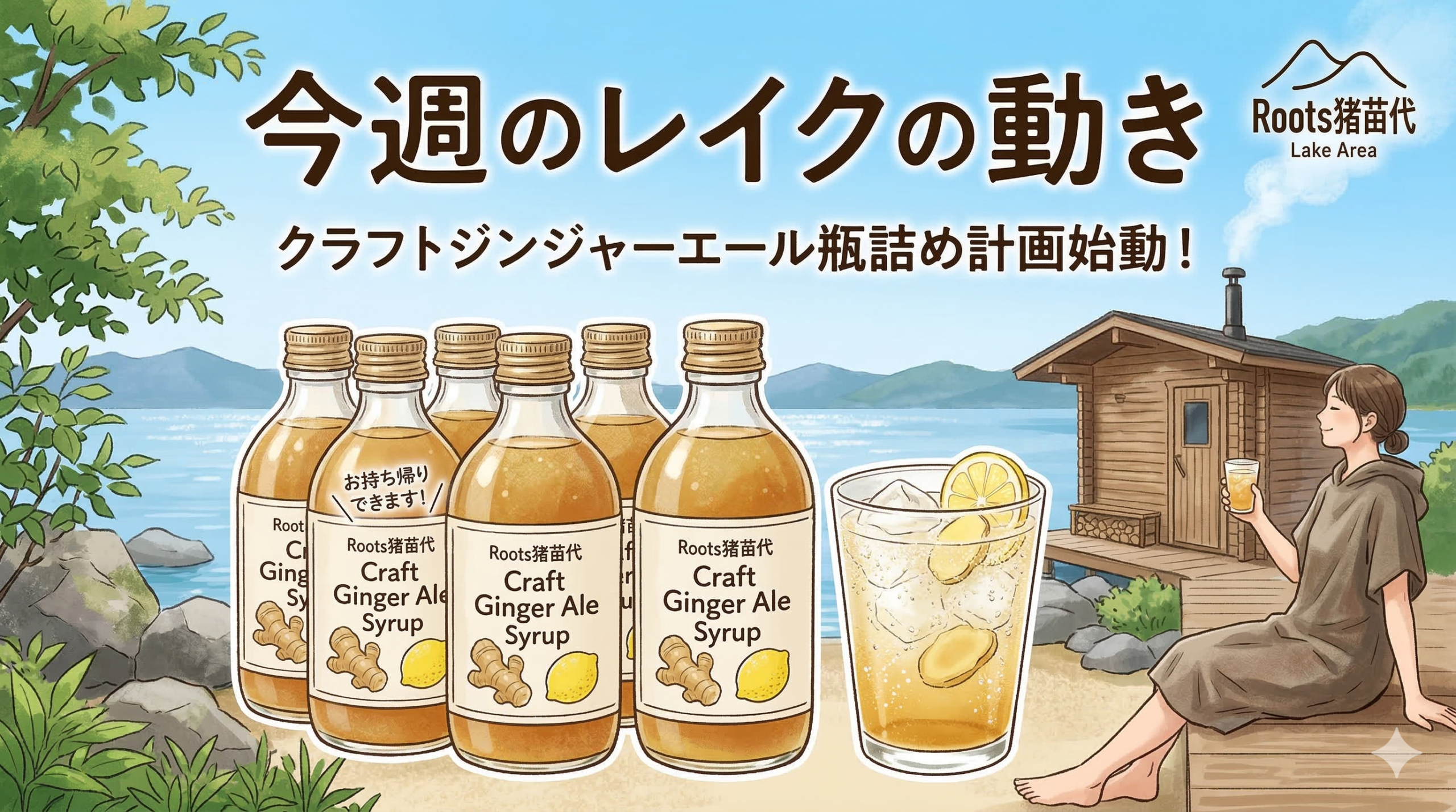 まず1つ目は、クラフトジンジャーエールシロップの瓶詰め計画について。 オープン当初からレイクの看板ドリンクメニューとして親しまれてきたクラフトジンジャーエールを、ついにお持ち帰りできる形にします。